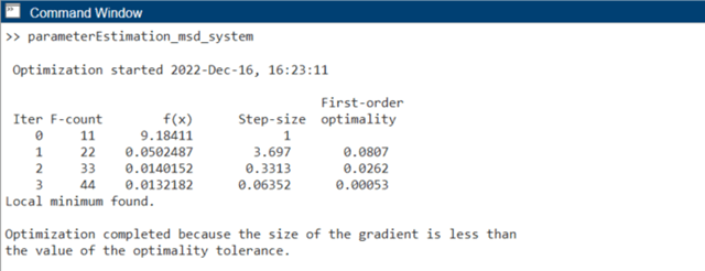 This example shows how to automatically generate a MATLAB® function to solve a parameter estimation problem. You use the Parameter Estimator to define an estimation problem for a mass-spring-damper and generate MATLAB code to solve this estimation problem.