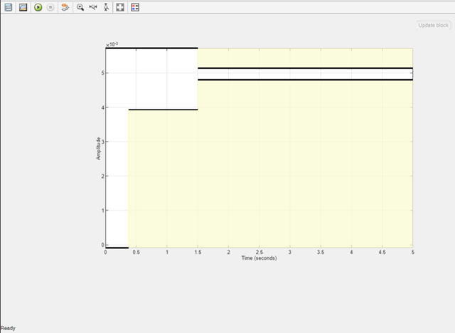 Given the step response characteristic we desire, it is simple to specify the upper and lower bounds of the response. Double-click the Position Constraint block in the Magnetic Levitation Plant Model subsystem to view constraints on the position of the ball. The constraint lines may be moved using the mouse.