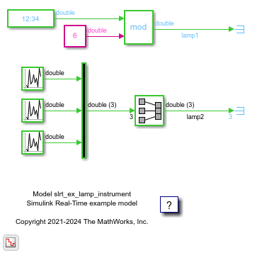 This example shows how to control the color of a lamp indicator on an instrument panel that connects to a Simulink® Real-Time™ application.