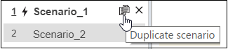 Right-click the Scenario_1 tab label and select Duplicate Scenario_1 from the context menu. Alternatively, go to the Scenarios side panel, point to Scenario_1 in the Scenario List to display the Duplicate scenario button, and click it.
