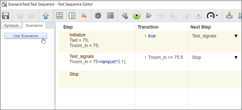 Use Test Sequence Scenarios in the Test Sequence Editor and Test Manager