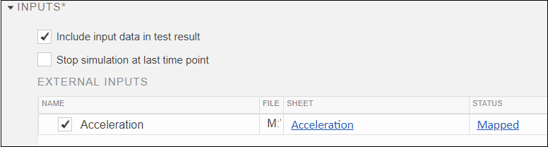 When you map external inputs to model elements, the mapping creates these possible results. These results appear under Inputs in the Test Manager interface in the Status column: