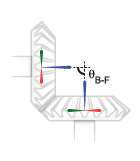 The imaginary lines extending from the base and follower z-axes must intersect at the shaft angle set in the block dialog box. The angle is denoted θB-F in the figure. If the Shaft Axes parameter is set to
