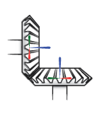 The Bevel Gear Constraint block represents a kinematic constraint between two gear bodies with intersecting rotation axes held at a specified angle. The base and follower frame ports identify the connection frames on the gear bodies. The gear rotation axes coincide with the connection frame z-axes. The gears rotate at a fixed velocity ratio determined by the gear pitch radii.