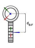 The distance between the base and follower frame z-axes, denoted dB-F in the figure, must be equal to the distance between the gear centers.