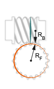the worm and gear bodies and tangent to the thread contact point. The pitch radii,