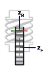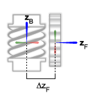The translational offset between the base and follower frame origins along the follower frame z-axis, denoted ΔZF in the figure, must be zero.