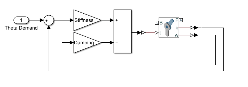 You can vary the spring set-point to elicit a feedback response to move the joint. The figure shows the Simulink® model of the controller.