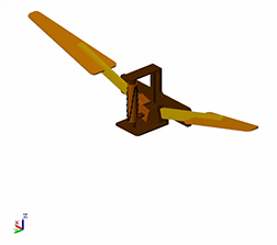 openExample('sm/PointOnCurveExample'). The model shown in the flapping-wing featured example opens.In the Modeling tab, click Update Model. Multibody Explorer opens with a view of the model in its initial state.