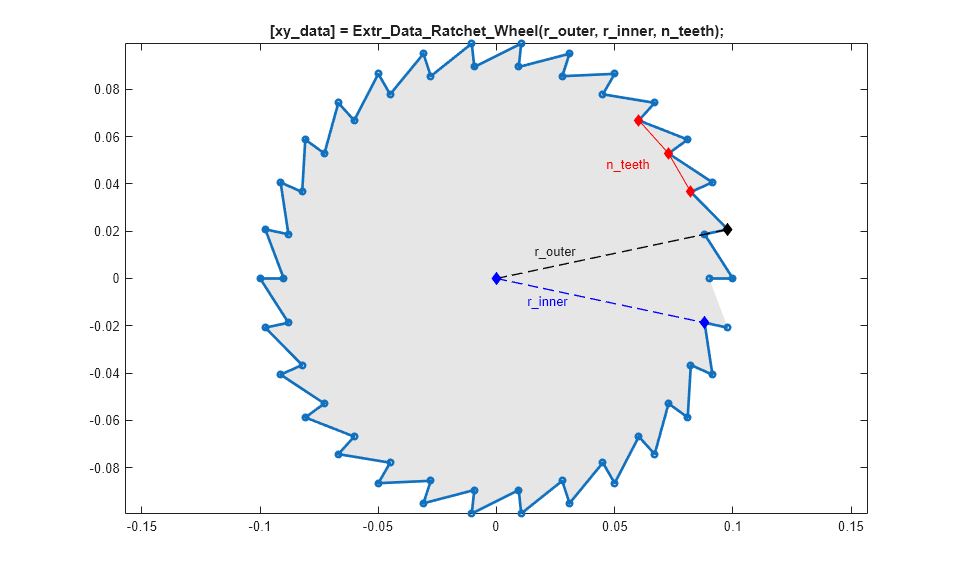 This plot shows the extrusion data for the wheel. This was created in MATLAB and was used to generate the data for the contact geometry along the edges of the wheel.