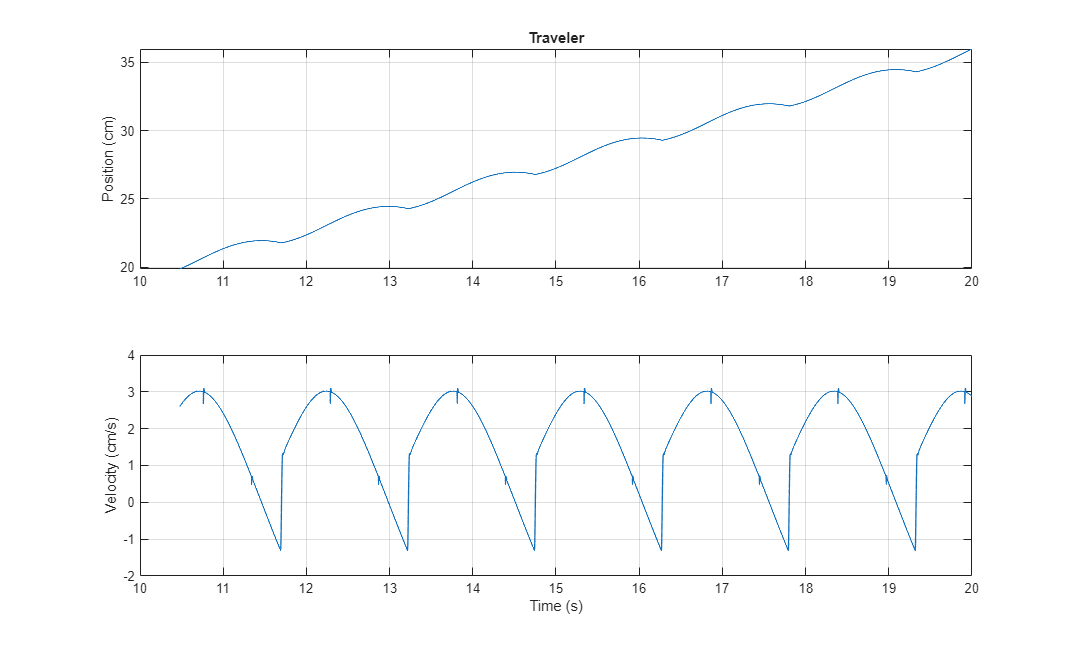 This plot shows the position and velocity of the middle pin of the traveler.
