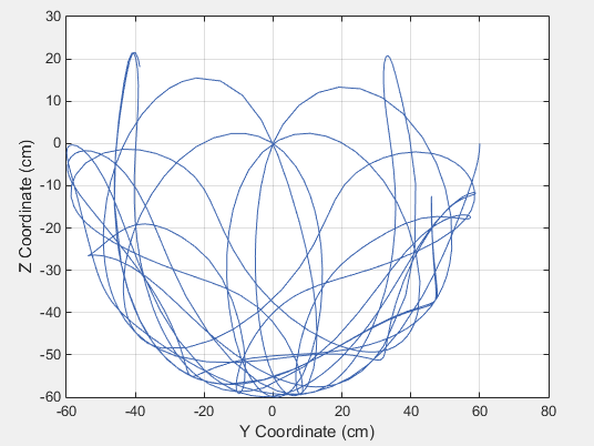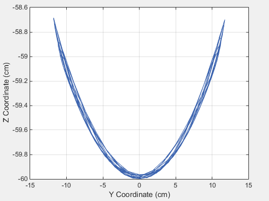 You can now plot the position coordinates of the lower link. To do this, at the MATLAB command line, enter: