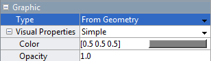 Simple. This setting is the parameter default.Expand the Visual Properties node. Color and Opacity appear as the active visual property parameters.