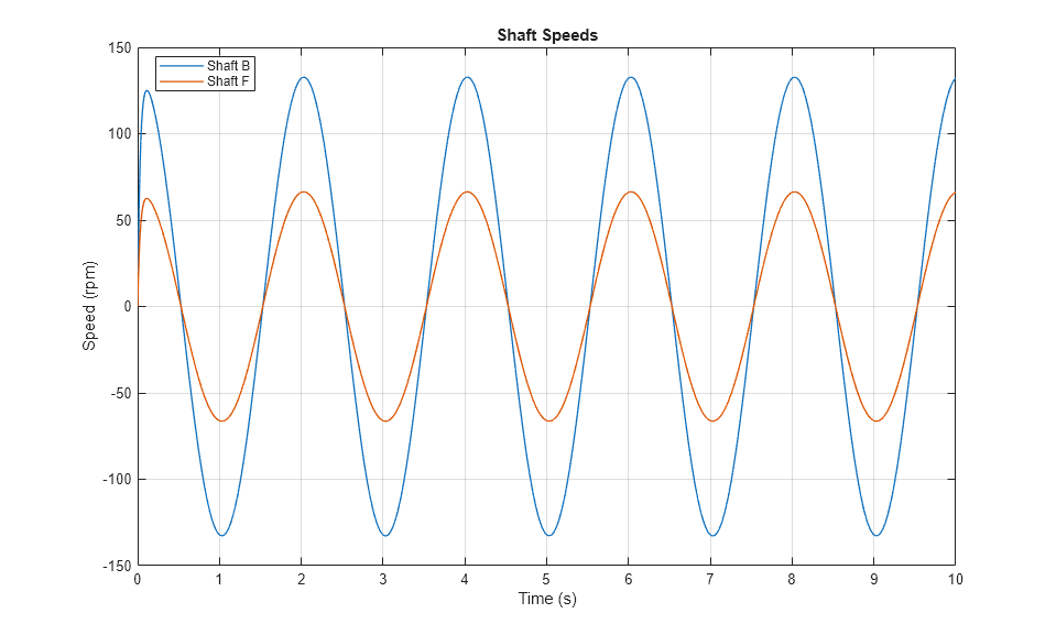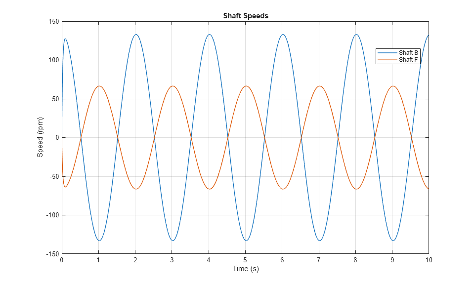 The plot below shows the speeds of the two shafts connected by the common gear assembly in an external configuration.