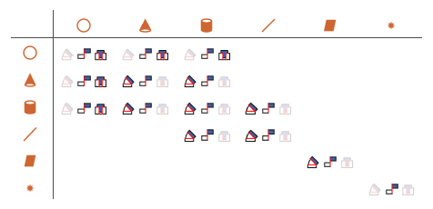 Supported constraints are valid only for certain entity pairs. The table shows the entity pairs compatible with the supported constraints. This table is symmetric with respect to the diagonal row.