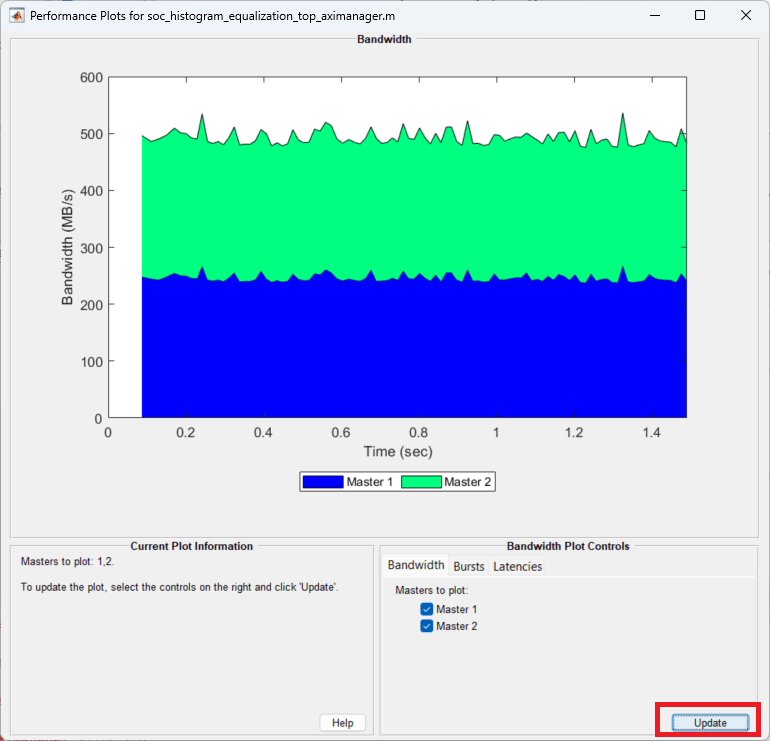 Note that both active masters are consuming 248.8 MB/s of memory bandwidth.