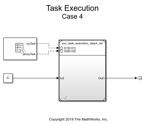 SoC Blockset simulates the execution of software tasks as they would execute on an SoC processor. The simulation honors the parameters of the task, such as period, priority and processor core. SoC Blockset simulates task preemption, task overruns, and concurrent task execution.