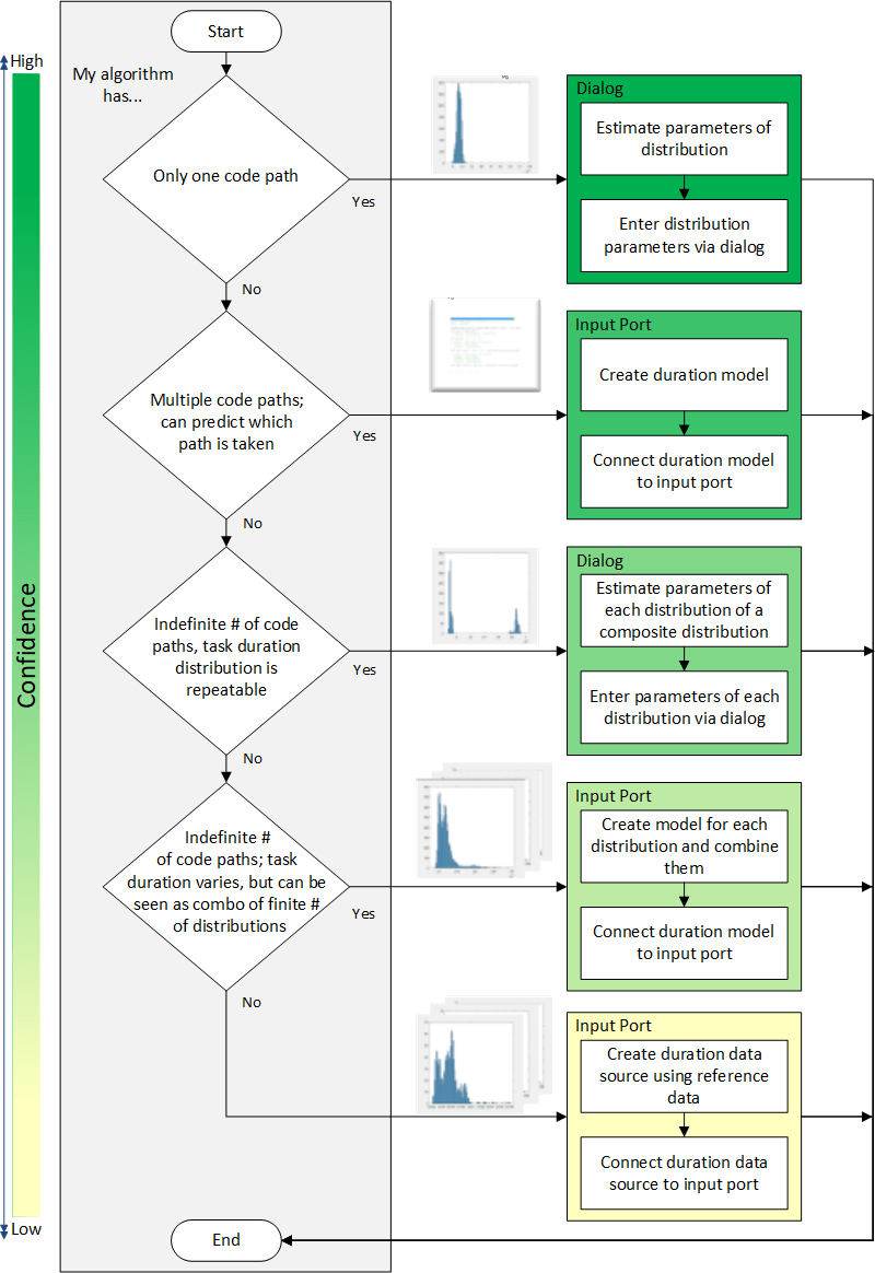 If the duration times for your task have different distributions and causes, select the most fitting options using the flowchart as general guidance.