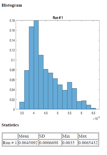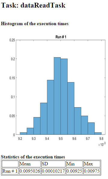 4. Run the following command to perform the statistical analysis of the task execution times obtained in simulation. Observe the Data Inspector run number. Modify the command if your run number is different.