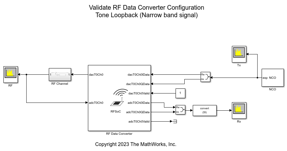 This example shows how to validate an RFDC configuration using a simulation. Using this example as a reference, you can design and validate your RF configurations for different RFSoC devices.