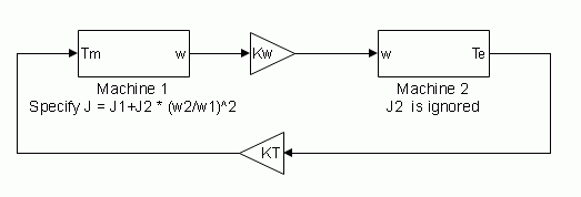 Although the parameters can be entered in either SI units or per unit in the dialog box, the internal calculations are done in per unit. The following block diagram illustrates how the mechanical part of the model is implemented. The model computes a deviation with respect to the speed of operation; not the absolute speed itself.