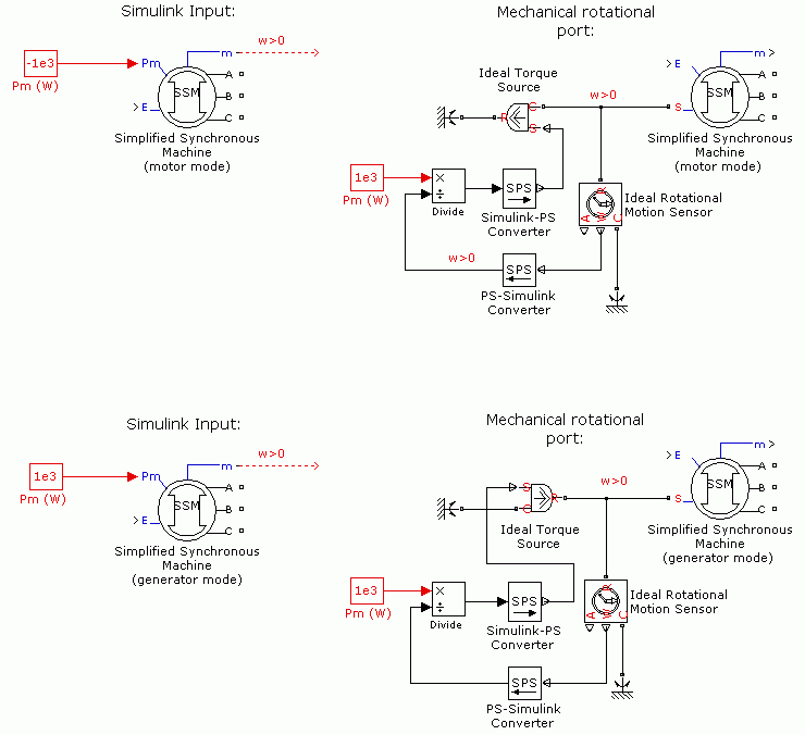 The Simplified Synchronous Machine block models both the electrical and mechanical characteristics of a simple synchronous machine.