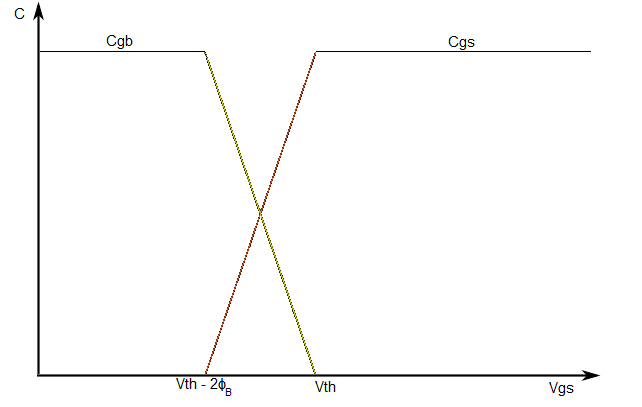 Gate-bulk and gate-source capacitance change gradually.