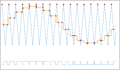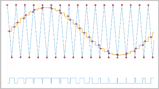 Generates a switch-on pulse if a sample is higher than the carrier signal or a switch-off pulse if a sample is lower than the carrier wave.