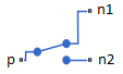 When the switch is open, port p is connected to port n1.