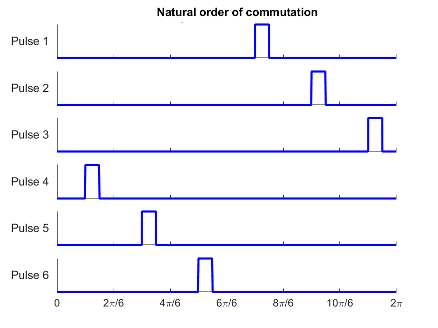 Pulse orderingproperty toNatural order of commutationto generate pulses in the natural order. Use this strategy to generate pulses for thyristor networks that use natural ordering.