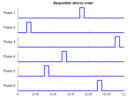 Set the pulse ordering strategy to modify the distinct phase-shift of each ramp, and as a result, the order of generated pulses: