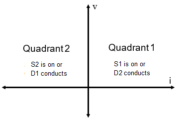 First and second quadrant. The figures show the equivalent circuit and the operation for the first- and second- quadrant model.