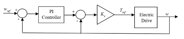 You provide measured and reference rotor velocities (w and wref) as inputs to the block. The block then outputs a reference torque Tref for an electric drive.
