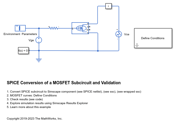 Netlist converted. Review Simscape component files and make manual edits for any unsupported items before building the Simscape library located at: +myMOSFET.