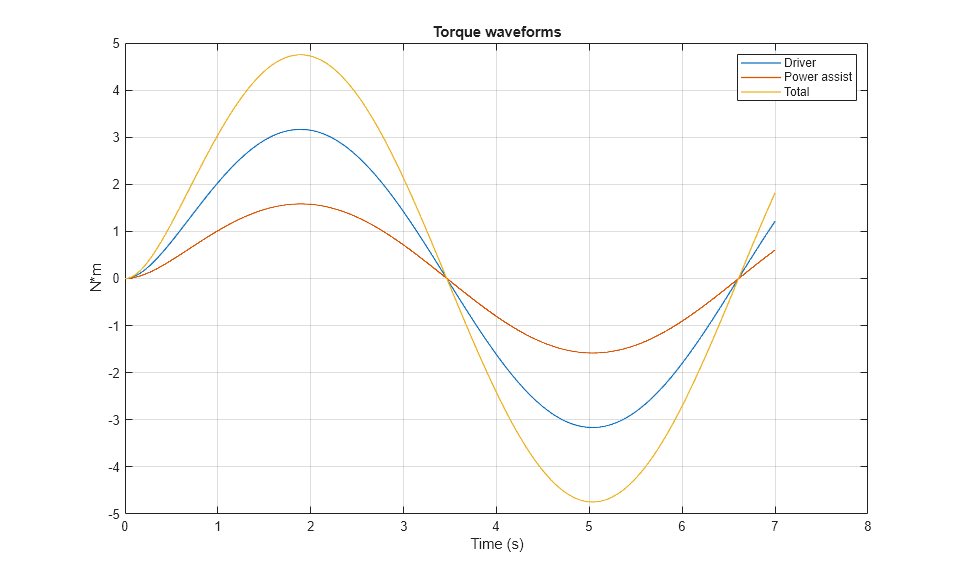 The plot below shows the driver, power assist, and total torque waveforms.