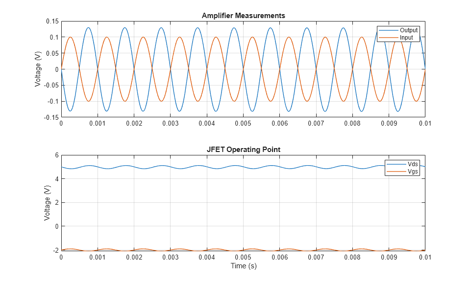 If you have Simulink® Control Design™, then to plot the frequency response, open the model JFETFrequencyResponse. On the Apps tab, under Control Systems, click Model Linearizer. In the Model Linearizer, on the Linear Analysis tab, in the Linearize section, click Bode. The linearization points were defined in this model by right-clicking on a Simulink line, and selecting Linearization Points.