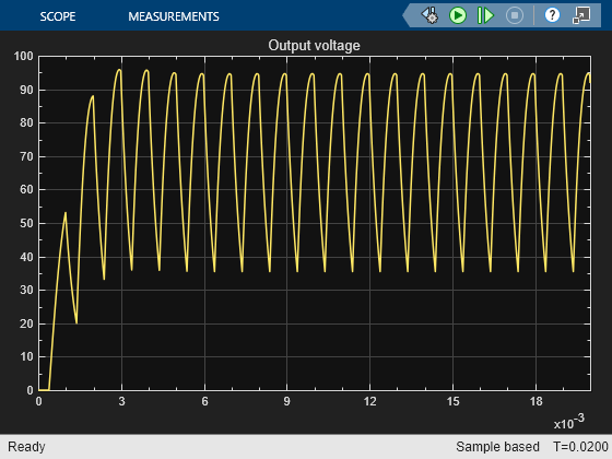 To get a more comprehensive understanding of the converter behavior and how the output voltage approaches a steady state, run a transient simulation of the high-fidelity model.