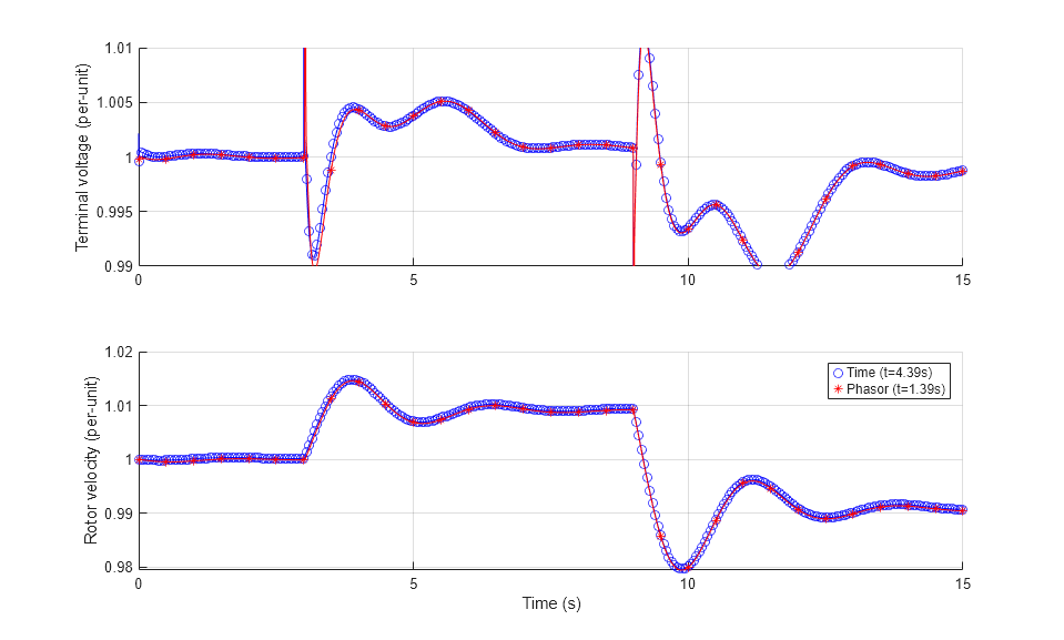 [hTime,hPhasor]=setup_figure(simlog_ee_sm_control_time,simlog_ee_sm_control_phasor,'ac'); legend([hTime,hPhasor],{['Time (t=',num2str(tsim_time),'s)'],['Phasor (t=',num2str(tsim_phasor),'s)']});