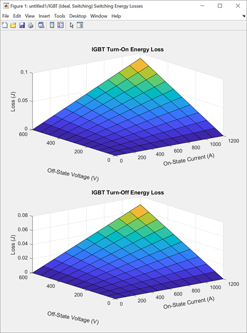 You can also generate surface plots of the turn-on energy loss and turn-off energy