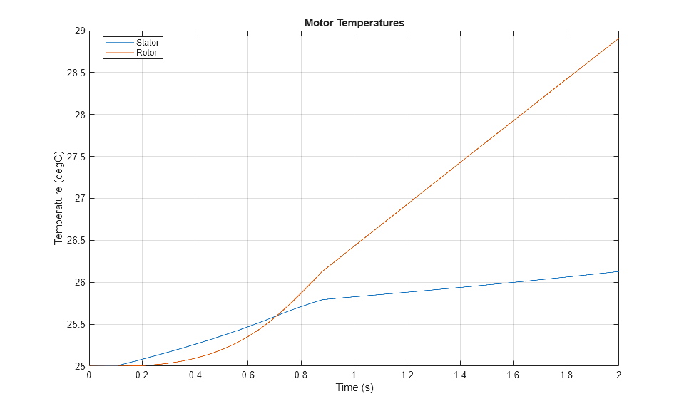 This plot shows the stator and rotor temperatures of the motor.