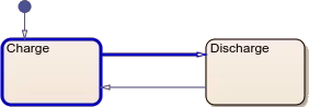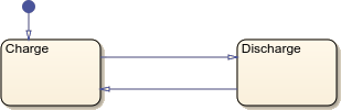 To model these requirements, you build a chart that contains two states, Charge and Discharge, that represent the operating modes of the battery system.