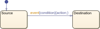 • A condition that must be met before the chart can move along the transition. To specify a condition, use square brackets.
