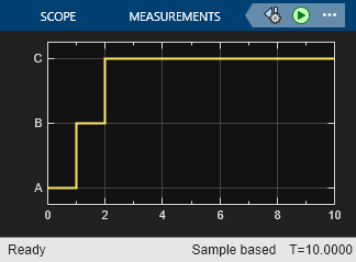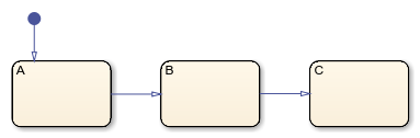 By default, the chart takes only one transition in each simulation step, progressing through states A, B, and C.