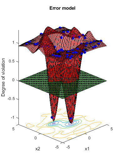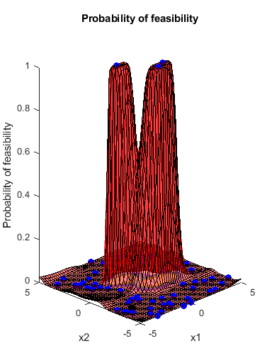 rng default results = bayesopt(fun,vars,'Verbose',0,'MaxObjectiveEvaluations',60,... 'AcquisitionFunctionName','expected-improvement-plus',... 'PlotFcn',{@plotMinObjective,@plotConstraintModels});