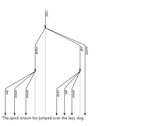 sentence = "The quick brown fox jumped over the lazy dog.";Visualize the dependency details in a sentence chart. Solid lines indicate dependencies and dotted lines indicate subtree labels.