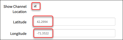 Select Show Channel Location and enter the Latitude and Longitude information for your channel location.