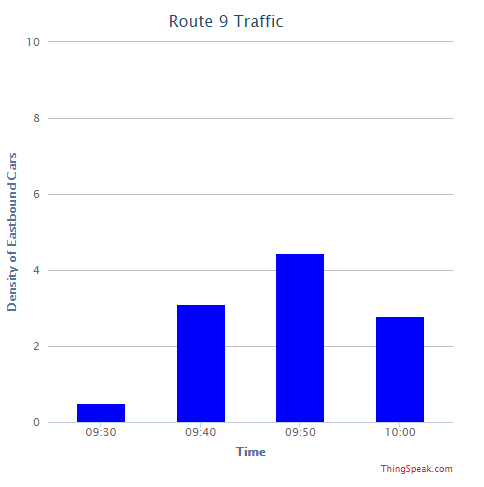 The response is a chart that displays the average outside temperature values over a 10-minute window using the temperature data from field 2 of ThingSpeak Channel 9.