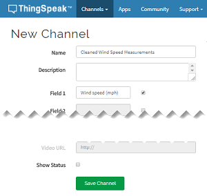 1) Store your clean data results by writing them to a private channel. To create a ThingSpeak channel, go to the Channels tab and select My Channels. Click New Channel. Select the corresponding check box, and enter these channel setting values: