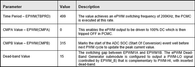 The ePWM1 module triggers ADC conversions to sense the plant feedback signals at a frequency of 200kHz.