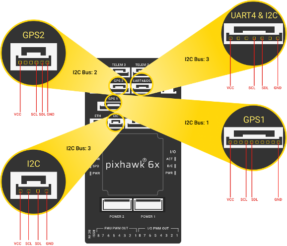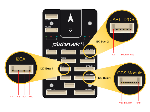 I2C Bus Port Numbers for Labels on PX4 Autopilots
